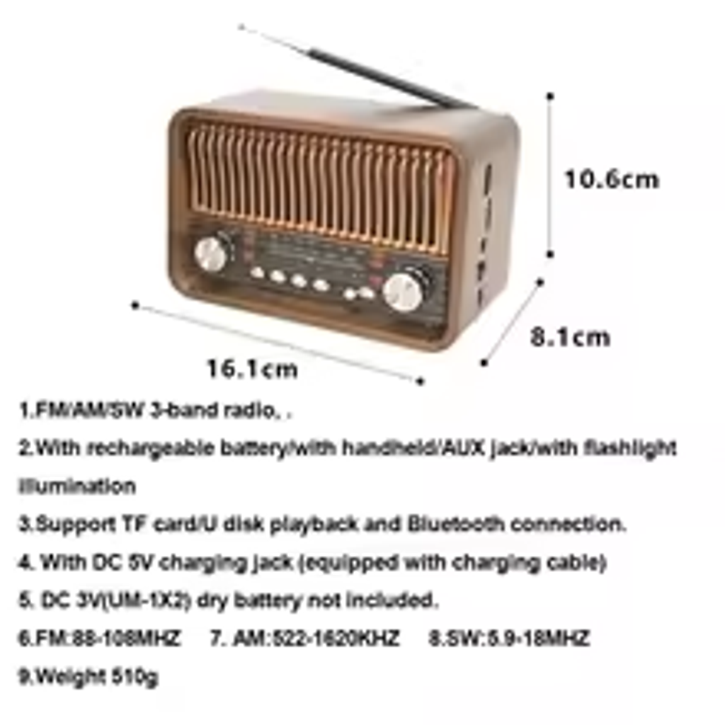 Packing list: 1*Radio, 1*Charging cable, 1*Instruction manual(No retail package)!!!