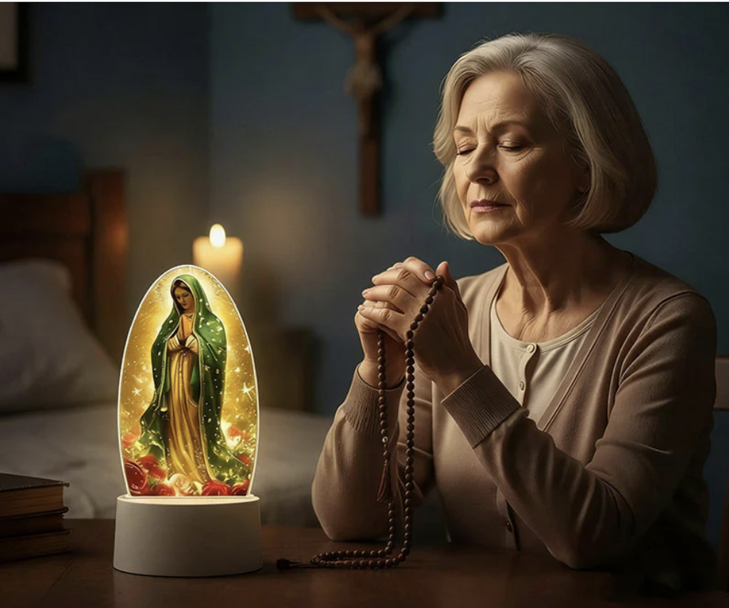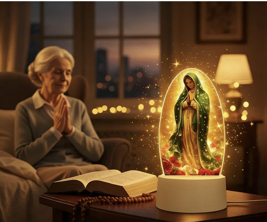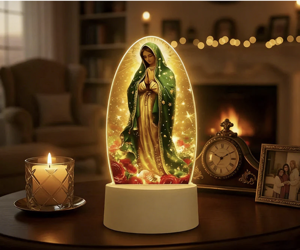 DIVINE HALO EFFECT: When illuminated, a magnificent golden glow surrounds the character, creating a breathtaking halo. This visually captures her divine presence, filling your space with a serene and holy light that feels truly miraculous.